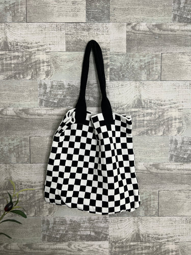 Checkered Crotchet Knit Commuter Bag